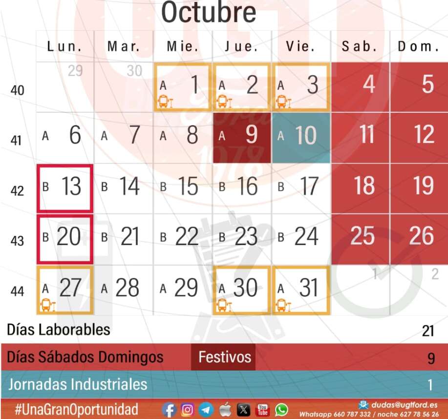 Tras 40 lunes sin trabajar por el ERTE Red y habiendo montando coches en lunes por primera ocasión en 2025 durante el 6 de octubre, la plantilla de Ford Almussafes tendrá puente jueves y viernes. Este jueves, 9 d’Octubre, es festivo en toda la Comunitat Valenciana, por lo que nunca estuvo previsto trabajo en la factoría.