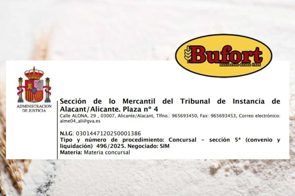 Harinas Bufort, la histórica compañía con sede en Mutxamel (Alicante) con casi 100 años de historia, ha presentado su plan de liquidación, el cual ha recibido luz verde por el Juzgado de lo Mercantil nº 4, quien ha gestionado el concurso de acreedores de la empresa desde su entrada en el mes de mayo de 2025.