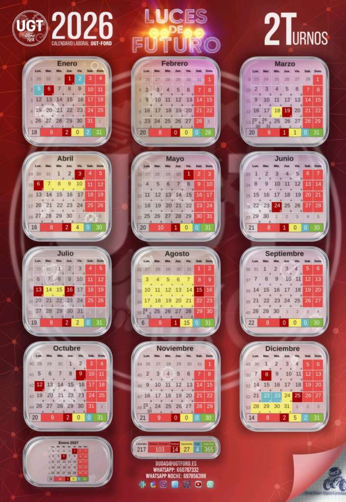 Esta propuesta metafórica se une a la de 2024, cuando el anhelo es que llegara un coche híbrido tras la negativa de Ford a los vehículos 100% eléctricos, mientras que en 2025 dibujaron una red en el calendario, en lo que suponía un llamamiento a que se aprobara el ERTE Red. La alternancia entre calendarios en la que piden vehículos (años pares, 2024 y 2026) con respecto a los impares (2025) hace presagiar que en 2027 la temática pueda versar sobre un nuevo mecanismo para mantener el empleo ya que el ERTE Red habrá expirado para entonces (sólo durará los años 20205 y 2026).