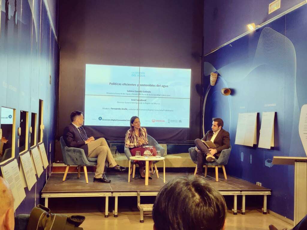 Mesa redonda con Sabina Goretti, directora general del Agua de la Generalitat Valenciana, y José Sandoval, director general del Agua de la Región de Murcia, moderada por Fernando Arufe, periodista de Economía Digital.