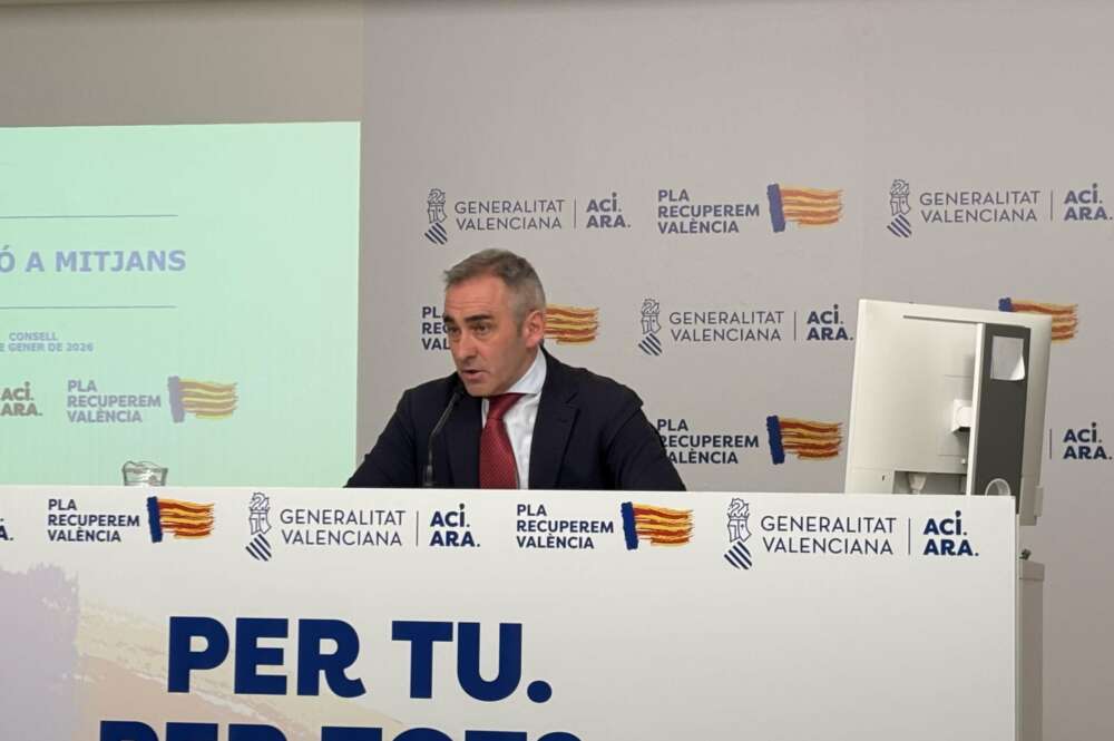 El portavoz del Gobierno valenciano y conseller de Agricultura, Agua, Ganadería y Pesca, Miguel Barrachina, en rueda de prensa tras el pleno del Consell.