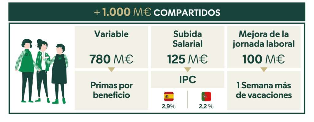 A aquestes dues partides cal sumar-hi també la millora de la jornada laboral mitjançant l’ampliació del període de vacances, que ha passat de 30 a 37 dies anuals. Una modificació de la qual també es va informar el passat desembre, que va entrar en vigor el present exercici tant a Espanya com a Portugal, i que, per descomptat, suposa una setmana addicional de descans per als treballadors.